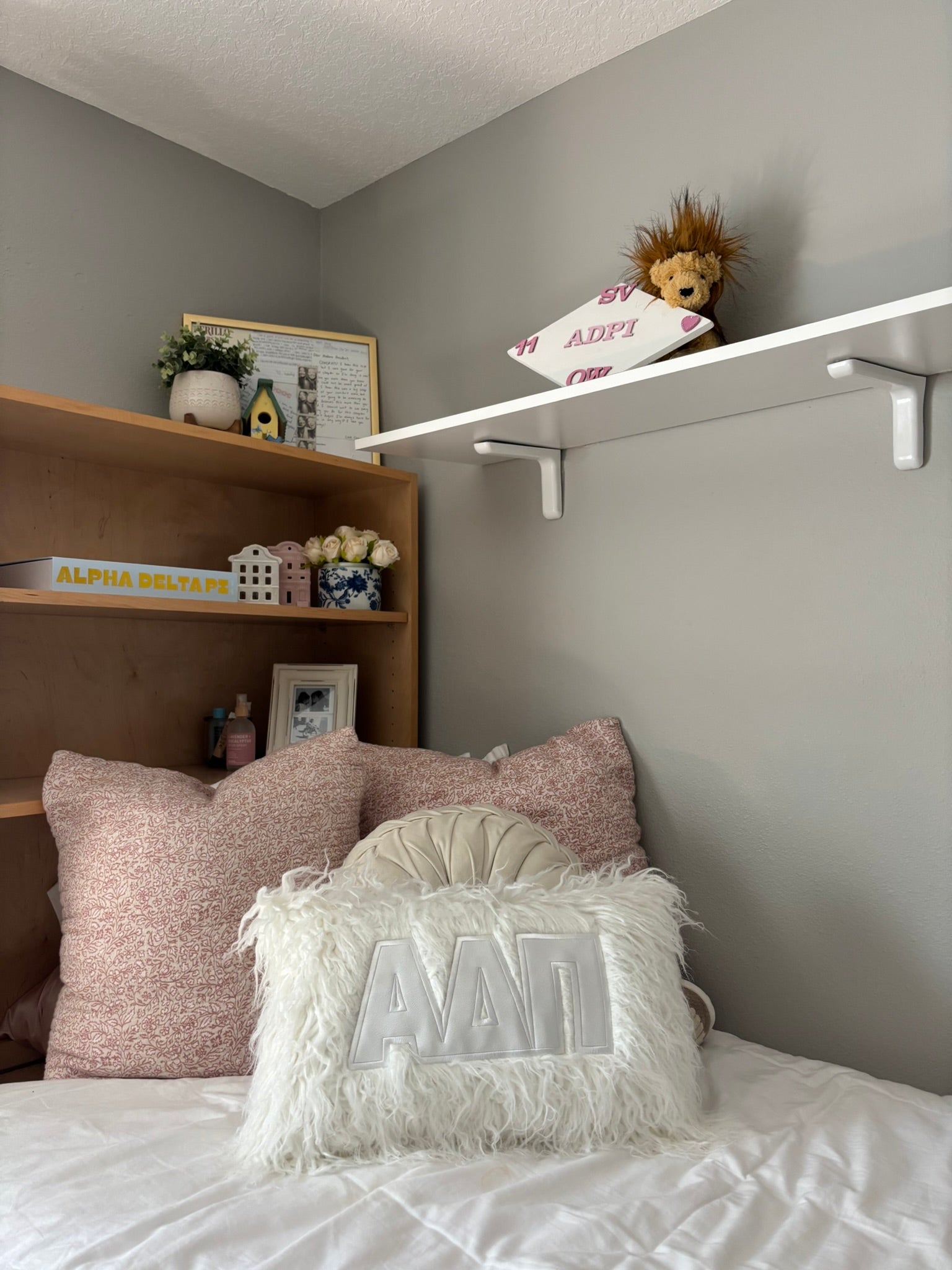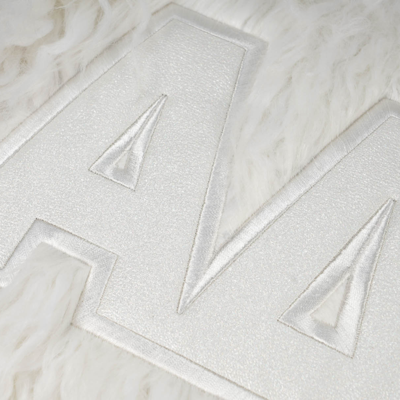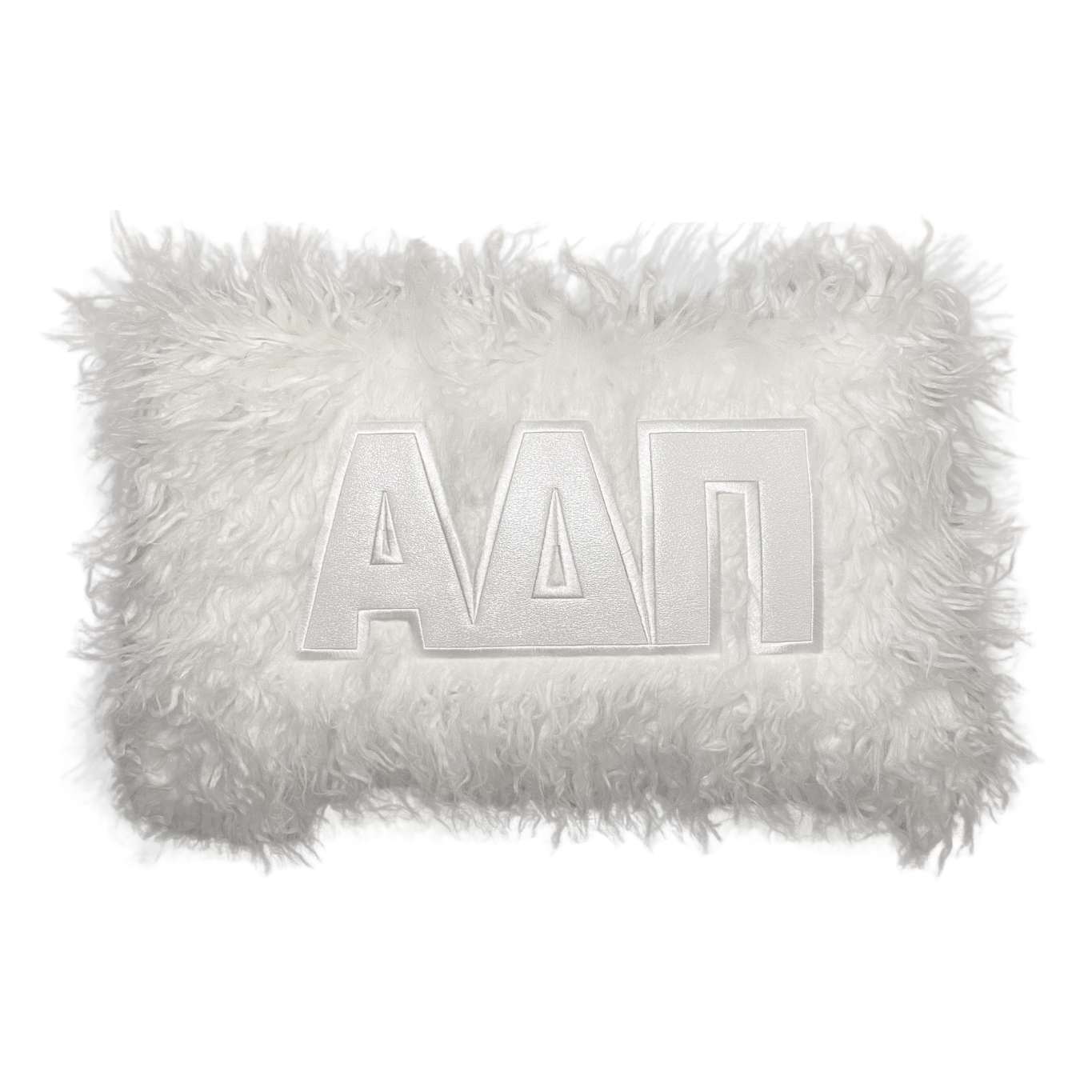 Your dorm room is already stylish, but this pillow is the finishing touch! Featuring a glittery white faux leather applique on soft white faux fur, it adds just the right amount of sparkle while showcasing your sorority pride.